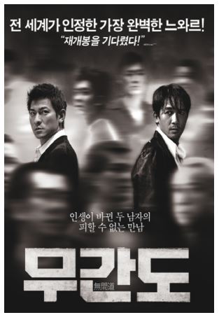 영화 <무간도》(Infernal Affairs, 無間道)>는 2002년에 제작된 홍콩의 범죄 스릴러 영화로, 양조위(Tony Leung)와 유덕화(Andy Lau)가 주연을 맡았습니다. 감독은 유위강, 맥조휘 공동연출. 이 영화는 마틴 스콜세이지 감독이 <디파티드(The Departed, 2006)란 제목으로 리메이크한 것으로 잘 알려져 있습니다. 레오나르도 디카프리오와 멧 데이먼, 잭 니콜슨 등이 열연을 폈쳤습니다. 두 영화를 비교해 보는 것도 흥로운 영화 관전법입니다. <무간도>는 경찰과 범죄조직 간의 스파이 심리전을 중심으로 전개되며, 두 주인공의 복잡한 관계와 갈등을 통해 긴장감 넘치는 이야기를 풀어냅니다.